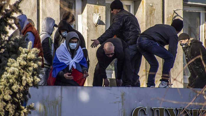 Среди штурмующих позже, после просмотра видео, обнаружили бывших сотрудников правоохранительных органов и российских военных, переодетых в гражданское. Однако не они руководили захватом. Очевидно, их завезли, потому что уже тогда был дальнейший план по захвату следующих учреждений, вывешиванию над ними российских флагов.
