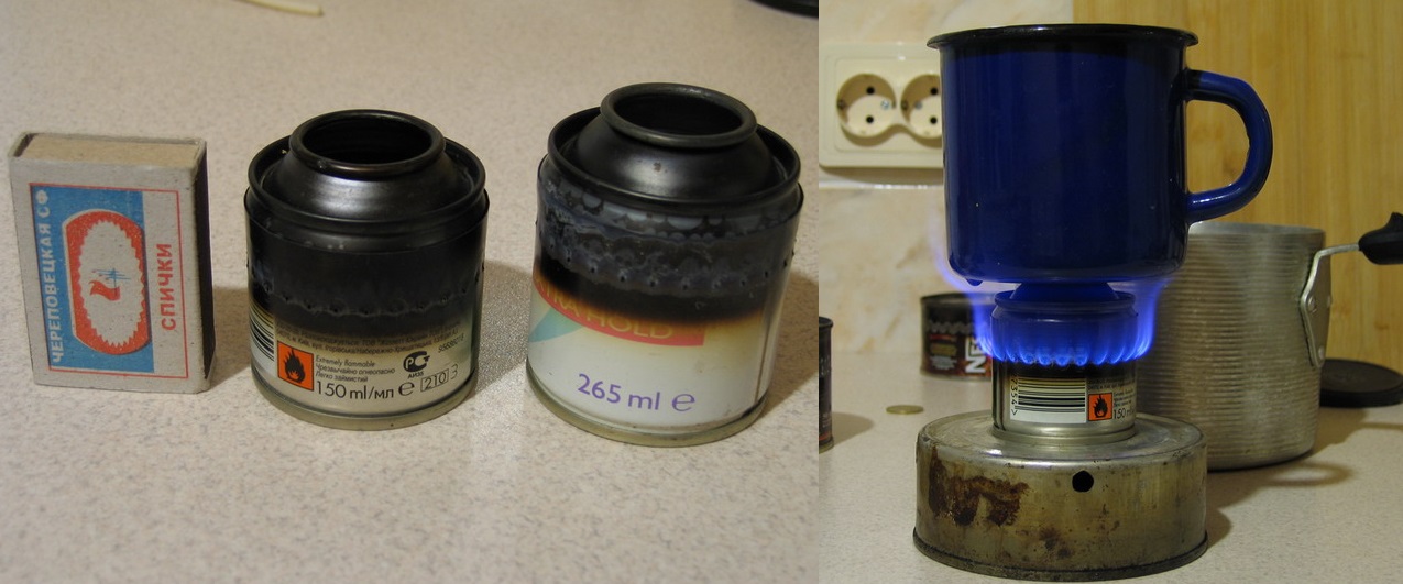 3. Обогреватель + походная печку для подогрева пищи из консервных банок - спиртовка